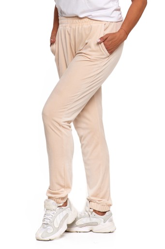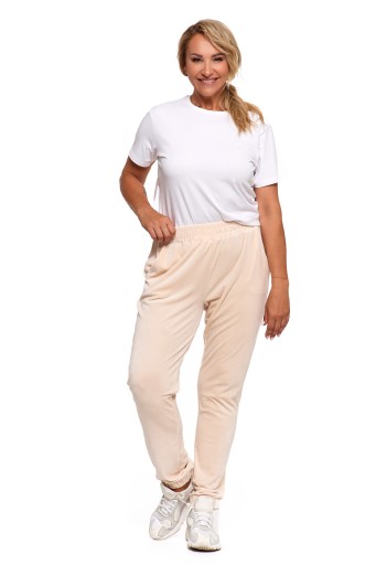 SPODNIE DRESOWE WELUROWE DAMSKIE BEŻOWE GŁADKIE WELUR MORAJ - XL