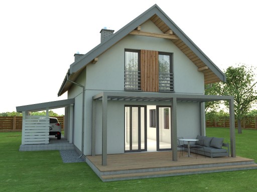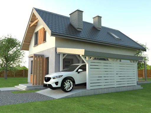 ✅ Wiata garażowa przy budynku z osobnym wejściem do kotłowni