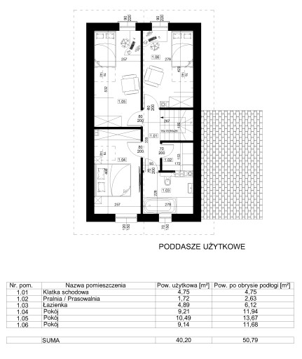 ŁĄCZNA POWIERZCHNIA PARTERU I PODDASZA: 92,66 m2