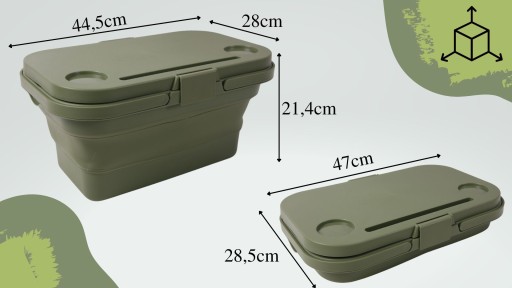 - ✅Składany - Spód kosza wykonany jest z mocnego tworzywa sztucznego. Możliwość składania zapewniają silikonowe elementy w kolorze zielonym. Kosz ma możliwość złożenia do małych rozmiarów, a jego przechowywanie wymaga mało miejsca.