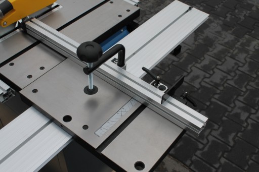 ✔️ masywne prowadnice z podziałkami, wzdłużna (stalowa) oraz kątowa jak i przedłużenie stołu w standardzie.