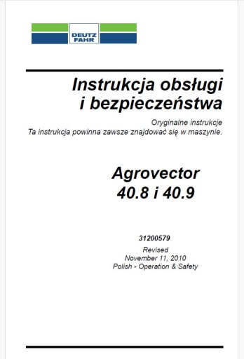 Przedmiotem mojej dzisiejszej aukcji jest instrukcja obsługi do ładowarki teleskopowej DEUTZ-FAHR
