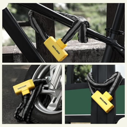 Uniwersalny: ten łańcuszek do zamka rowerowego z 2 kluczami, łańcuszek zabezpieczający ma 2,3 stopy i jest wystarczająco długi, aby zamknąć razem 2 rowery lub przypiąć rower do drzewa, bramy, płotu, balustrady, grubego słupka i innych. Zamek można zastosować także do motocykli, hulajnog, deskorolek, grillów, drabinek, drzwi, kosiarek i wielu innych.