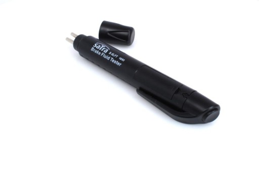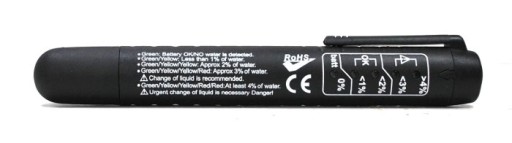 Tester może być używany jako cyfrowy tester płynu hamulcowego odpowiedni do określania jakości płynu hamulcowego. Opracowany do użytku profesjonalnego w warsztatach samochodowych oraz w serwisach. Jakość jest sprawdzana i wskazywana na pięciu diodach LED w postaci „procentowej zawartości wody w płynie hamulcowym”. Aby sprawdzić jakość płynu: 1. Naciśnij przycisk włączania zasilania, zapali się zielona dioda LED. 2. Włóż tester do zbiornika na jedną sekundę, po czym wynik testu zostanie prawidłow