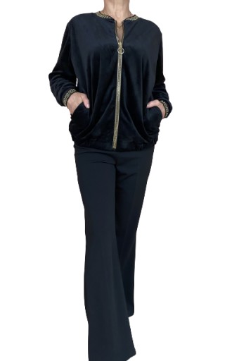 BLUZA WELUROWA CZARNA NA ZAMEK ROZM. 46 / 48