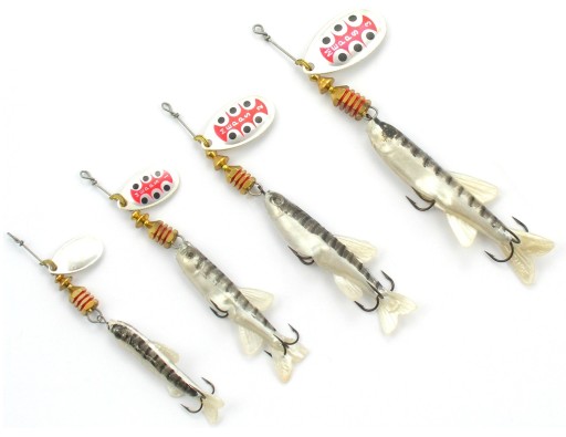 Nie jest to malutki wabik, czwórka ma łącznie 9 cm, więc konstruktorzy wymyślili patent pozwalający na prostą wymianę rybki, co znakomicie zwiększa liczbę możliwych kombinacji.