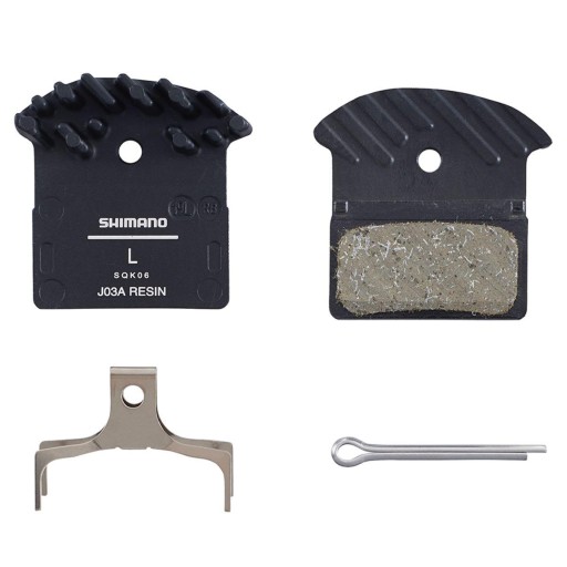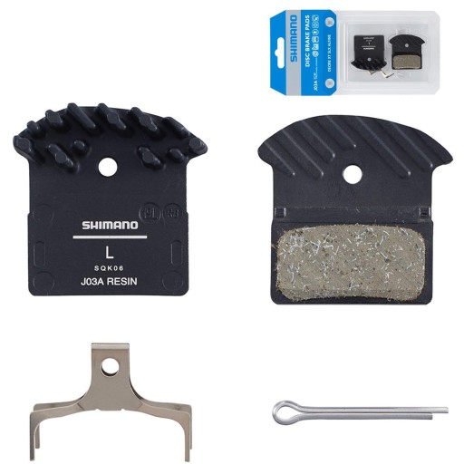 Klocki Shimano J03A to żywiczne klocki hamulcowe przeznaczone do hamulców tarczowych Shimano z grupy XTR, XT, SLX i Alfine. Charakteryzują się dobrą modulacją, siłą hamowania powyżej średniej oraz długą żywotnością.