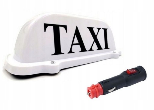 Sygnalizator TAXI z podstawą magnetyczną - silny magnes. Łatwy montaż, wystarczy postawić na dachu i podłączyć zasilanie (12V).