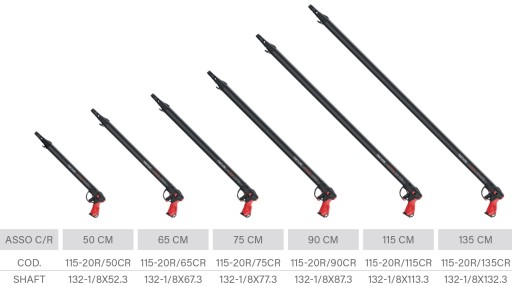 Kusza Seac Asso C/R (z regulacją) jest dostępna w 6 długościach, od Asso C/R 50 do Asso C/R 135.