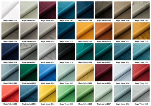 TKANINA MAGIC VELVET - puszysta tkanina meblowa wyjątkowo miękka i przyjemna w dotyku. Tkanina tapicerska delikatnie cieniuje się odbijając padające światło. Magic Velvet inspiruje 60 kolorami zarówno w tworzeniu nowoczesnych jak i klasycznych aranżacji. Dodatkowym atutem materiału Magic Velvet są właściwości Cleanaboo, które ograniczają wchłanianie cieczy. Rozlana ciecz przyjmie formę kropel, które z łatwością usuniesz z tkaniny. Tkanina ta posiada certyfikat PETPROOF, który informuje o zwiększonej odporności na zadrapania i zaciągnięcia wywołane kocimi oraz psimi pazurkami.