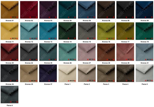 Tkanina Kronos- to ekskluzywny materiał typu plusz, welur. Wyjątkowo miękka, miła w dotyku i pięknie się mieni od światła. Tkanina Kronos ma też długi i gęsty włos który zmienia swoje położenie po przejechaniu ręką co powoduje cieniowanie materiału. Tkanina jest również odporna na mechacenie się i nie tak łatwo ją uszkodzić. Występuje w wielu modnych i żywych kolorach dzięki czemu zachwyca od pierwszego spojrzenia i nie pozwala przejść obojętnie obok. Jest wręcz stworzona do eleganckich wnętrz.