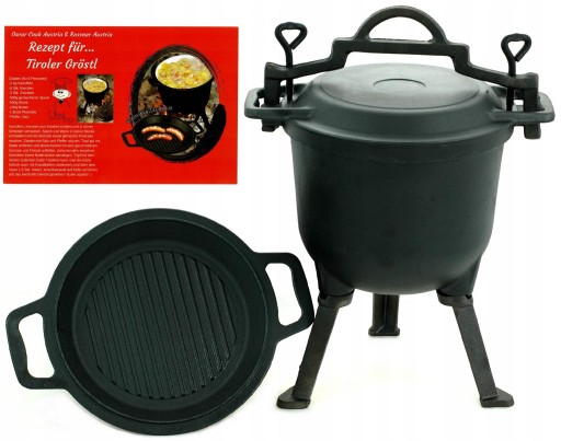 W zestawie jedna POKRYWA 2w1 która może służyć jako PATELNIA GRILLOWA którą można postawić nad ogniskiem, można również używać w domu, przystosowana jest do wszystkich kuchni.