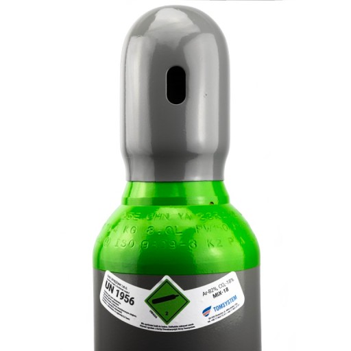 Niezbędna w spawaniu z użyciem gazów osłonowych, lekka, poręczna, wysokiej jakości butla gazowa mix (mieszanka, mieszanina) Argon Ar 82% + Dwutlenek Węgla CO2 18% (pojemność 8l). Butla jest pełna, a ciśnienie robocze wynosi 150 bar. Butle gazowe tego typu są powszechnie stosowane w spawalnictwie. Każda sprzedawana przez nas butla na gaz jest nowa i napełniana w naszej firmie, jak również podlega rygorystycznym normom jakościowym i bezpieczeństwa. Zawory są zabezpieczane przed odkręceniem zarówno folią, jak i specjalnym kołpakiem. Dodatkowo każda butla gazowa posiada legalizację na 10 lat od daty produkcji.