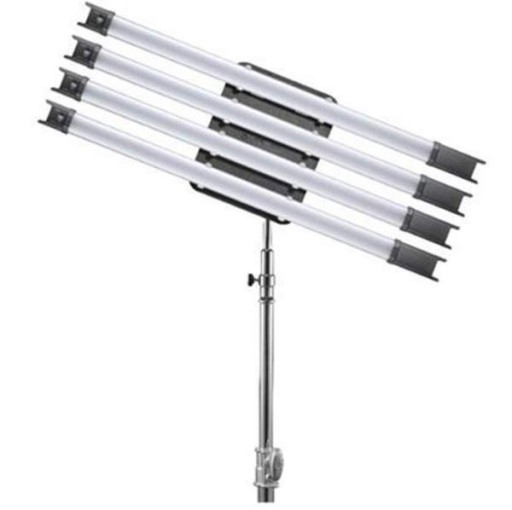Ten uchwyt obsługuje 4 lampy LED Godox TL60/TL120 umożliwiając zwiększenie wydajności oświetlenia bądź łączenie różnych kolorów światła emitowanego przez poszczególne tuby świetlne.
