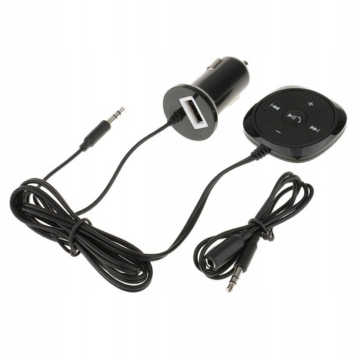 Obsługuje AUX / zestaw głośnomówiący / ładowanie urządzeń Obsługuje zestaw głośnomówiący: wykonuje połączenie / odbiera połączenie / odrzuca połączenie Paruje się z telefonem i podłącza do portu AUX w samochodzie, aby odtwarzać muzykę Obsługuje zarządzanie muzyką: Play / Pause / Skip Wyjście USB max 5V/2,1A do ładowania urządzenia