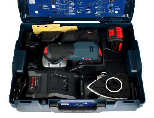 Akumulatora szlifierka oscylacyjna GSS 18V-13 jest równie wydajna jak typowe szlifierki oscylacyjne sieciowe, a przy tym bardziej poręczna, lekka i niezależna ponieważ nie posiada przewodu zasilającego. W wyposażeniu seryjnym znajduje się najnowszej generacji ładowarka sieciowa – model GAL 18V-40 PROFESSIONAL.