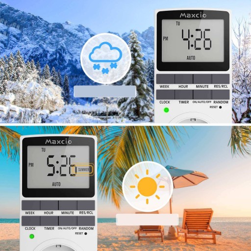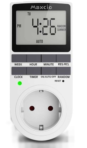Maxcio cyfrowy programator czasowy, gniazdko elektryczne z 10 konfigurowalnymi programami włączania, 16A, 3680W, 1szt.