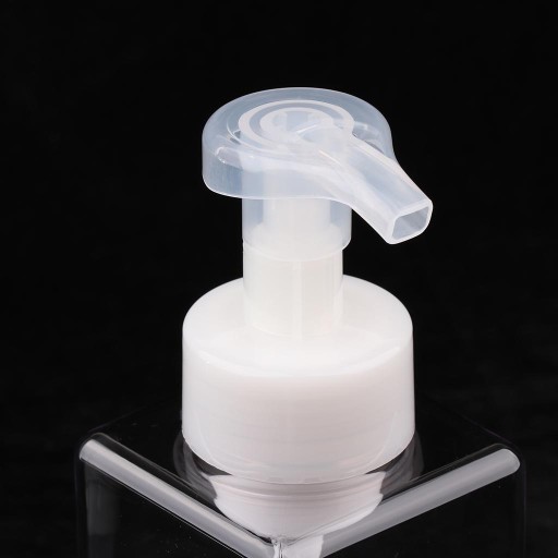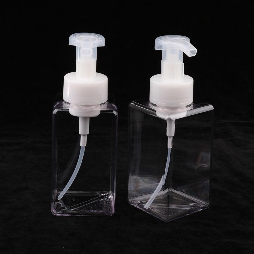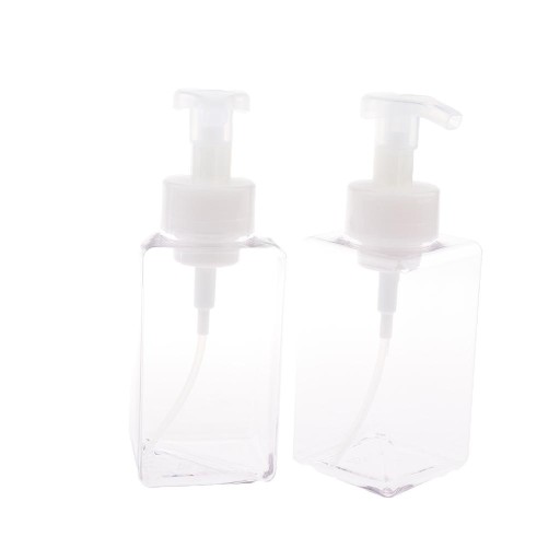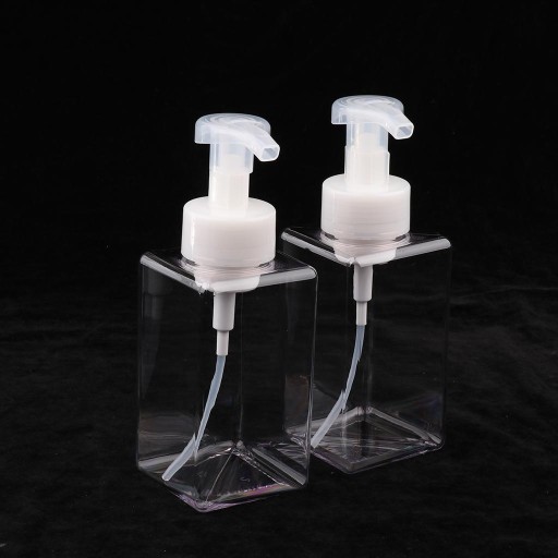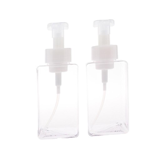 Pusta plastikowa butelka z kwadratową pompką i dozownikiem pianki do przezroczystego balsamu w płynie