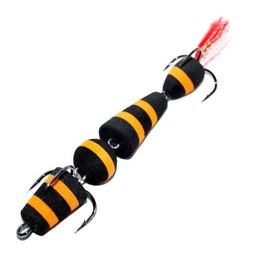 Wykonana z lekkiej, pływającej pianki EVA - postawiona na dnie unosi się ułatwiając drapieżnikom atak. Metalowe łączniki wykonane z mocnego, nierdzewnego drutu. Kotwice ostre, nierdzewne w kolorze czarnego niklu, w rozmiarach 3 i 5.
