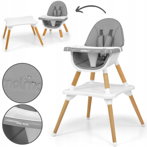 Nowoczesne i stylowe krzesełko do karmienia dzieci 2w1 Malmo . Wykonane z najwyższej jakości materiałów – łączy w sobie funkcjonalność oraz nowoczesny design. Krzesełko w wersji wysokiej przeznaczone dla niemowląt od 6 miesiąca życia do 36 miesięcy życia lub osiągnięcia wagi 15 kg, a w wersji niskiej krzesełko plus stoliczek dla dzieci od 3 do 6 roku życia lub osiągnięcia wagi 25 kg.