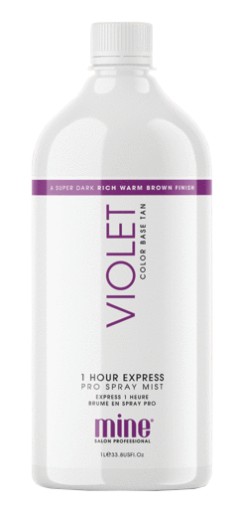 VIOLET - 1H Express Pro Spray Mist marki MineTan. Mgiełka w płynie. Przeznaczona do stosowania wraz z profesjonalnym urządzaniem do opalania natryskowego np. Tan.Handy, zarówno na całe ciało oraz twarz, bez względu na rodzaj karnacji. Posiada specjalną formułę na bazie mieszanki fioletu i ciemnych brązów, która zapewnia efekt intensywnej, ciemnobrązowej opalenizny o oliwkowym finiszu zainspirowaną egzotycznym, europejskim słońcem. Nałożona na skórę z stopniowo ciemnieje, dzięki czemu proces jej pojawiania jest bardzo naturalny. Pianka nie posiada pomarańczowych tonów ani zapachu sztucznej opalenizny, a także jest wegańska i nie testowana na zwierzętach.