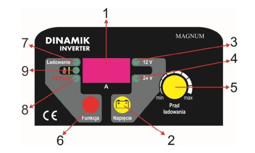 - Pokrętło regulacji natężenia prądu ładowania