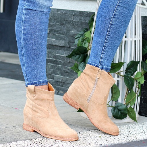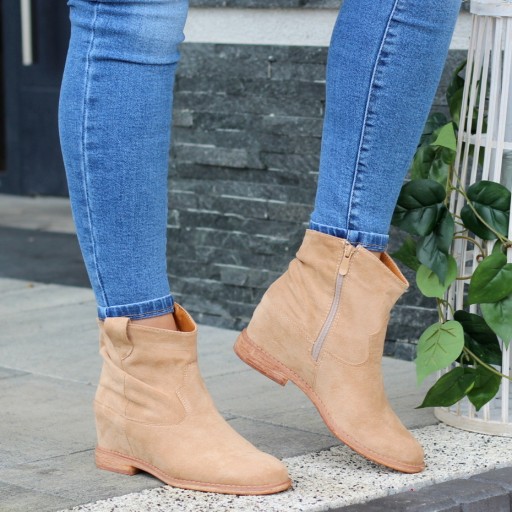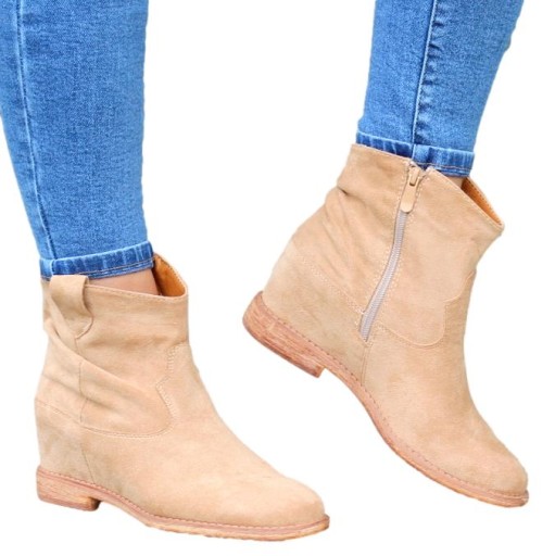 Beżowe DAMSKIE BOTKI ocieplane na koturnie Megi