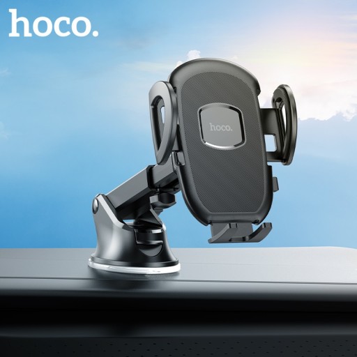 hoco. H9 General to samochodowy uchwyt zaciskowy do telefonu / na telefon, z przeznaczeniem do montażu na deskę / kokpit / Konsolę / szybę pojazdu, wyposażony w regulowane ramię, dające nieograniczone możliwości regulacji i dostosowania do własnych potrzeb kierowcy oraz przegub kulowy, mocowany za pomocą przyssawki silikonowej z zaciskiem, przeznaczony do telefonów komórkowych / smartfonów lub tabletów o wadze nie większej niż 0,5 kg i wielkości wyświetlacza od 4.5 do 7 cali. Uchwyt posiada dodatkowo regulowane stopki dolne.