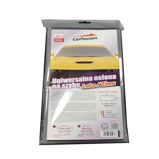 - Rozmiar uniwersalny, dla samochodów o rozmiarze szyby szerokość 145 - 175, wysokość do 95 cm.