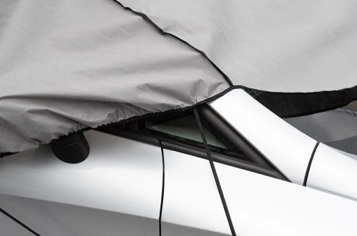 Pół-plandeka HALF wykonana jest z trójwarstwowego materiału idealnie chroni przed promieniami UV, śniegiem, deszczem, szronem i innymi czynnikami atmosferycznymi jak również przed nadmiernym nagrzaniem się wnętrza pojazdu.
