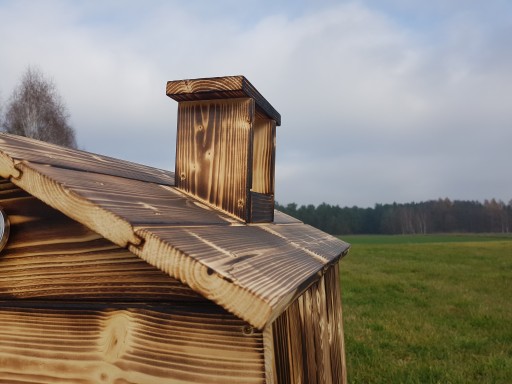- Dach drewniany zdejmowany w komplecie z dużym kominkiem (w dachu wywiercony otwór dzięki któremu dym swobodnie się wydobywa)