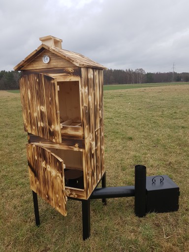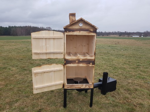 WĘDZARNIA DWUKOMOROWA DREWNIANA OGRODOWA OPALANA GOTOWY ZESTAW