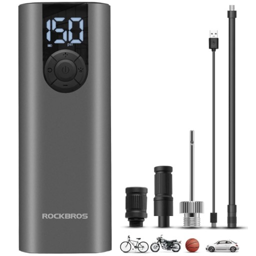 Pompka elektryczna marki ROCKBROS to idealne rozwiązanie do domu, warsztatu ale również podczas podróży. Bez problemu napompujesz tym kompresorem piłki, koła rowerowe czy samochodowe.