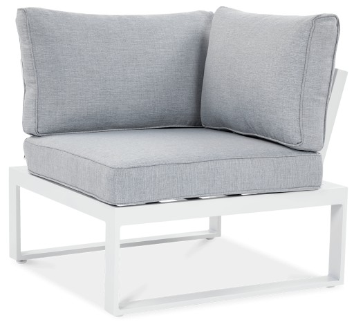 Wszystkie poduszki w zestawie mają grubość 10 cm, co zapewnia wyjątkowy komfort siedzenia. Kolor poszewek doskonale wpisuje się w matową biel, którą pokryto powierzchnię aluminium w procesie malowania proszkowego.