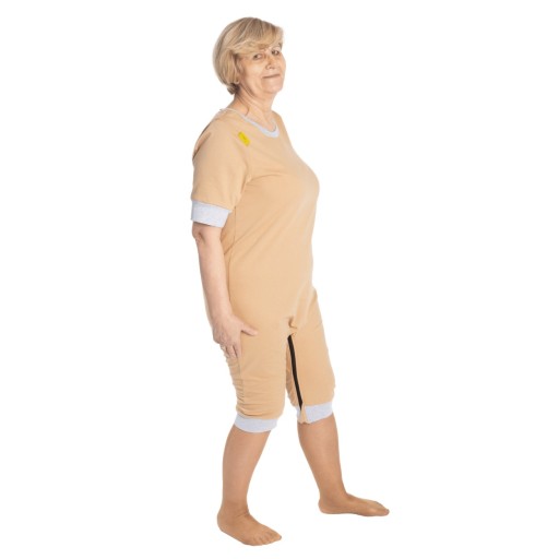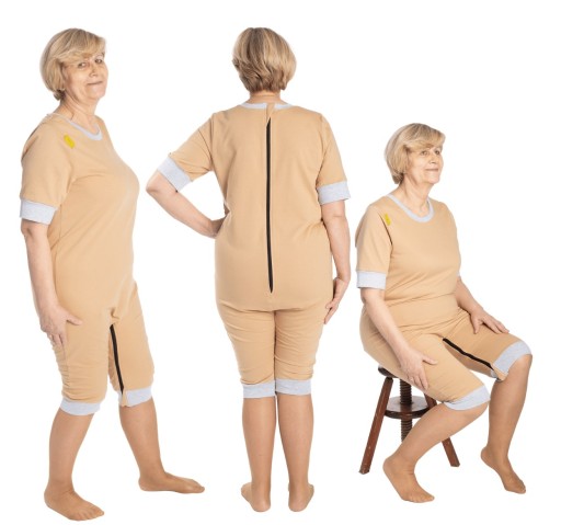 Body dla seniora - krótki rękaw, zamek z tyłu, krótkie nogawki, zamek w kroku ze ściągaczami