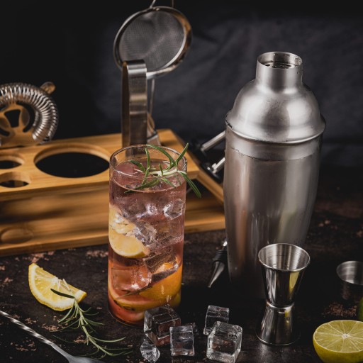 Solidny, trwały, ciężki wysokiej jakości zestaw akcesoriów barowych do robienia koktajli, wykonany ze stali nierdzewnej.