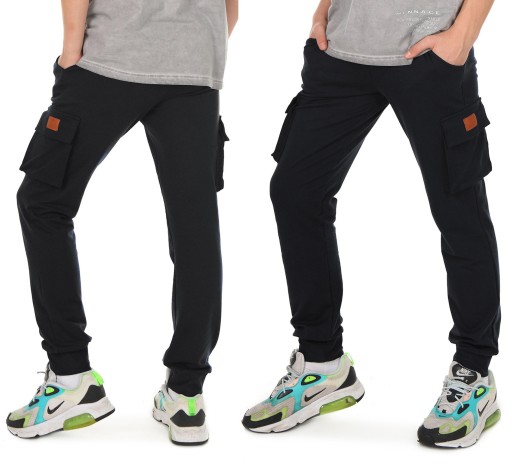 - Spodnie wykonane z materiału dresowego ,posiadają dwie kieszenie z przodu oraz dwie boczne kieszenie na wysokości kolana z patką .Nogawki wykończone miękkim,elastycznym ściągaczem .