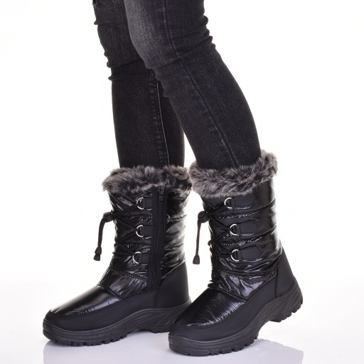 Wysoka cholewka za kostkę przykuwa uwagę ze względu na wykończenie z gęstego futerka. Buty posiadają zamek ułatwiający zakładanie oraz ściągacz, który dopasuje cholewkę w celu maksymalnej ochrony przed śniegiem i mrozem.