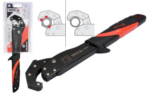 Klucz szybkonastawny YATO pozwala na obsługę go jedną ręką. Szczęka górna dzięki wbudowanej sprężynie samoczynnie dostosowuje swoje rozwarcie w zależności od rozmiaru elementu. Natomiast w celu zwolnienia klucza wystarczy przycisnąć go w dół, co powoduje otwarcie się szczęki. Takie rozwiązanie daje operatorowi możliwość swobodnego wykorzystania wolnej ręki, a także znacznie przyspiesza pracę.