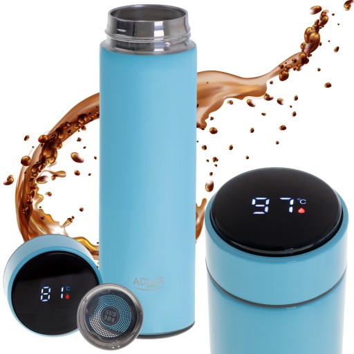 KUBEK TERMICZNY TERMOS 473ml LED Z TEMPERATURĄ NA KAWĘ HERBATĘ DO SAMOCHODU ADLER EUROPE