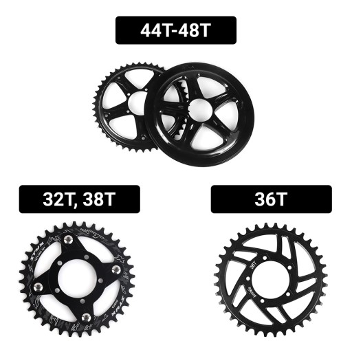 - 32T, 36T, 38T (Zwiększą kadencję pedałowania i komfort jazdy w górskim terenie)