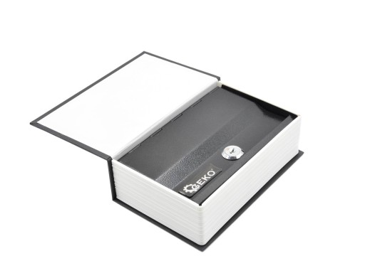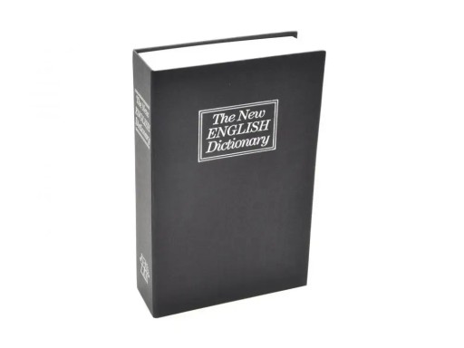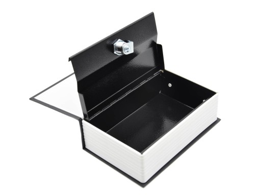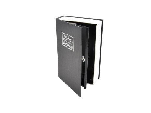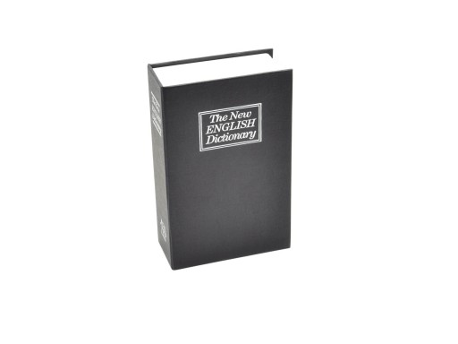 Kasetka w formie książki. W środku metalowy schowek. W komplecie dwa kluczyki. Wymiary zewnętrzne: 240 x 155 x 55 mm. Wymiary skrytki: 225 x 145 x 49 mm.