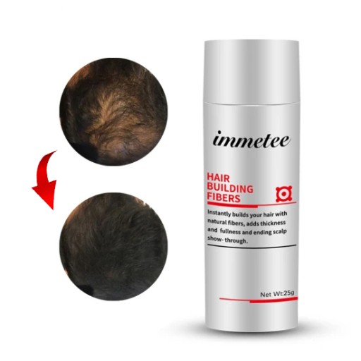 Mikrowłókna do włosów Immetee to innowacyjny produkt, który pozwala uzyskać natychmiastowy efekt gęstszych i pełniejszych włosów.