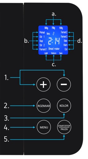 2. Przycisk "Rozmiar" - wybierz pożądany rozmiar chleba dla programów 1-8.