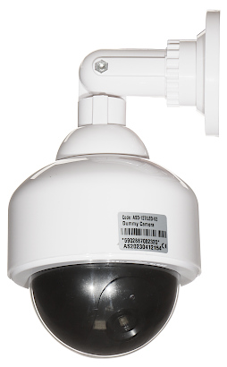 Atrapa kamery szybkoobrotowej (Speed Dome) wraz z uchwytem; Migająca dioda LED: czerwona ; Zasilanie bateryjne: 2x AA (Baterie) ; Kolor: Biały ;