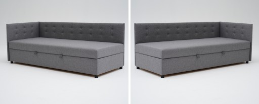 - duży pojemnik na poduszki i pościel na całej długości mebla