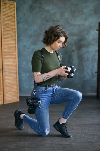 Ten skórzany pasek NA 2 APARATY pomaga skupić się wyłącznie na procesie kreatywnym, zamiast odczuwać zmęczenie i ból szyi/ramion. Jest to doskonały towarzysz do codziennego fotografowania!