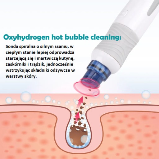 ⭐️ Tlenowo-wodorowe czyszczenie gorącymi bańkami: Sonda spiralna z silnym ssaniem, w ciepłym stanie lepiej rozładowuje starzejącą się i martwiczą kutynę, zaskórniki i trądzik, podczas gdy składniki odżywcze wstrzykiwane do warstw skóry.