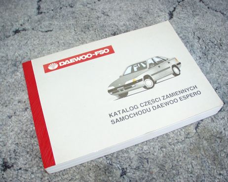 Mam do zaoferowania nowy, oryginalny, wydany przez producenta katalog części zamiennych samochodu DAEWOO Espero. Jak widać na zdjęciu katalog jest nowy, nigdy nie używany. Jest to wydanie z czerwca 1995 r. Katalog zawiera 510 stron.