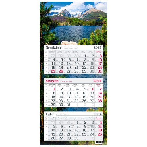 Kalendarz ścienny na rok 2024 - trójdzielny